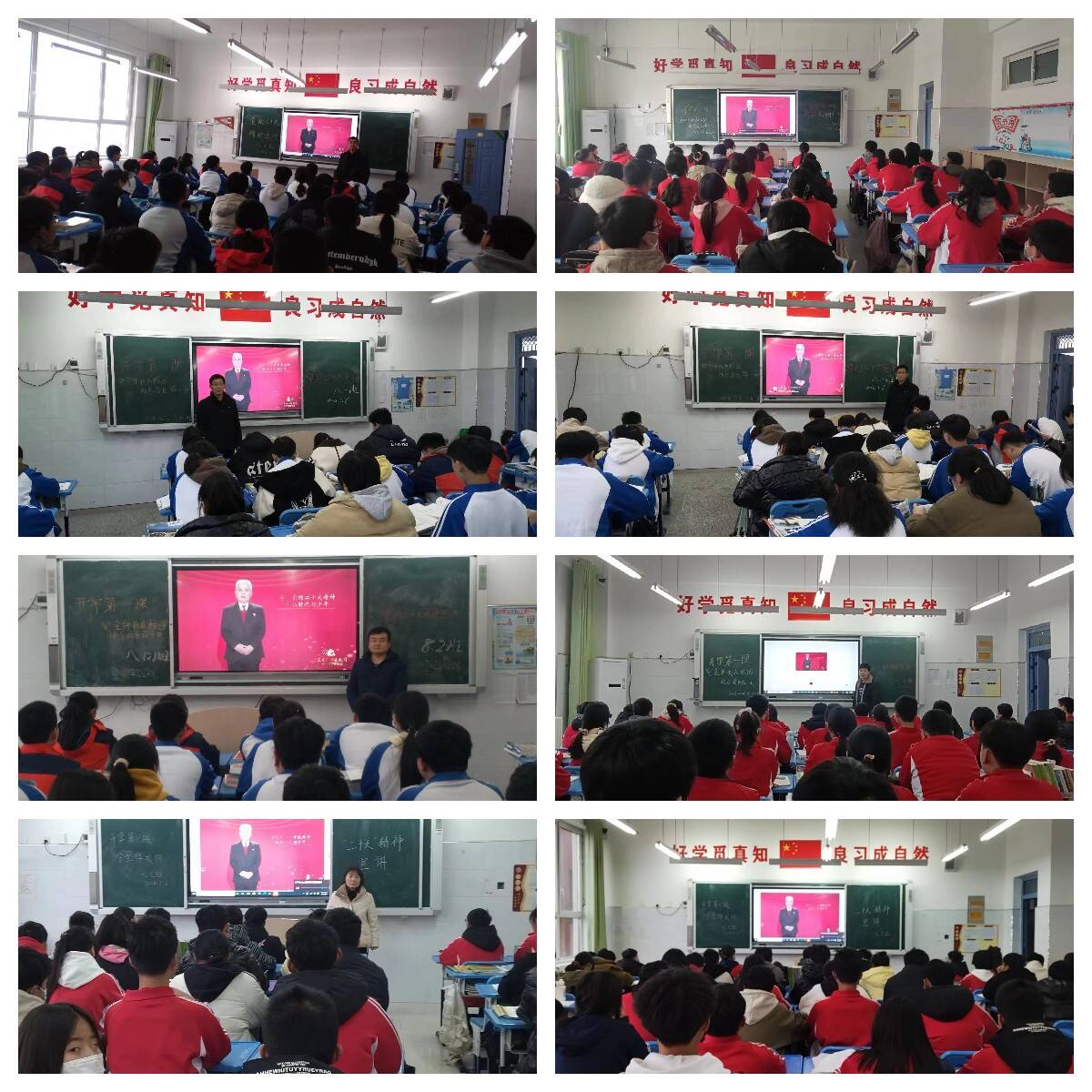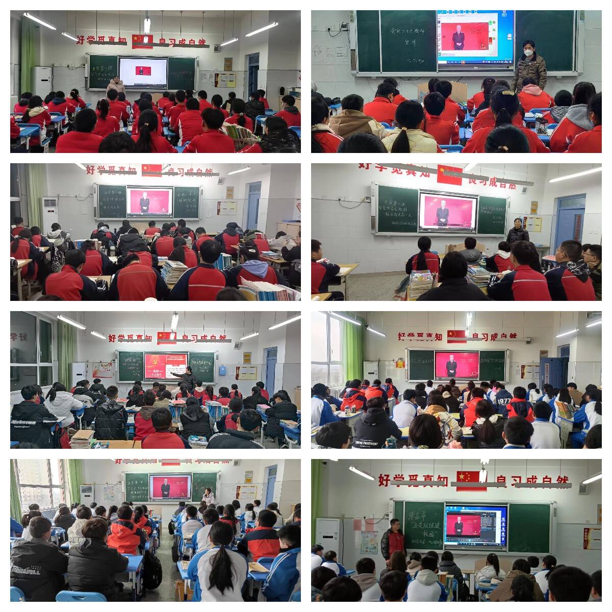 学校学习活动分成两个阶段进行:2月6日早8点,六合学校全体教师在会议室集合,学习活动由高强校长亲自主持。老师们听得认真、学的专注。下午4点,全体学生到校后,由各班班主任负责组织学生观看了宣讲活动视频《学习党的二十大精神,做新时代好少年》,主要内容:一是党的二十大主要精神;二是广大青年要坚定不移听党话跟党走。
