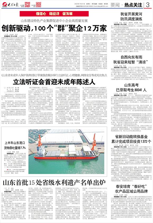 今年,工信部还将在全国范围内培育100个左右中小企业特色产业集群。山东将面向全国征集优质服务资源,加快组建省级数字化转型服务商资源库,加快在集群内树立一批数字化转型的标杆企业。瞄准强化龙头企业的集群牵引能力,山东将加快培育一批制造业领航型企业,推动龙头企业积极参与配套产业园建设,通过共享供应链、搭建协同创新平台等方式带动上下游关联企业发展壮大。