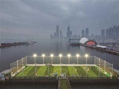 青岛奥帆中心海上钻石球场成为时尚运动达人“打卡地”。