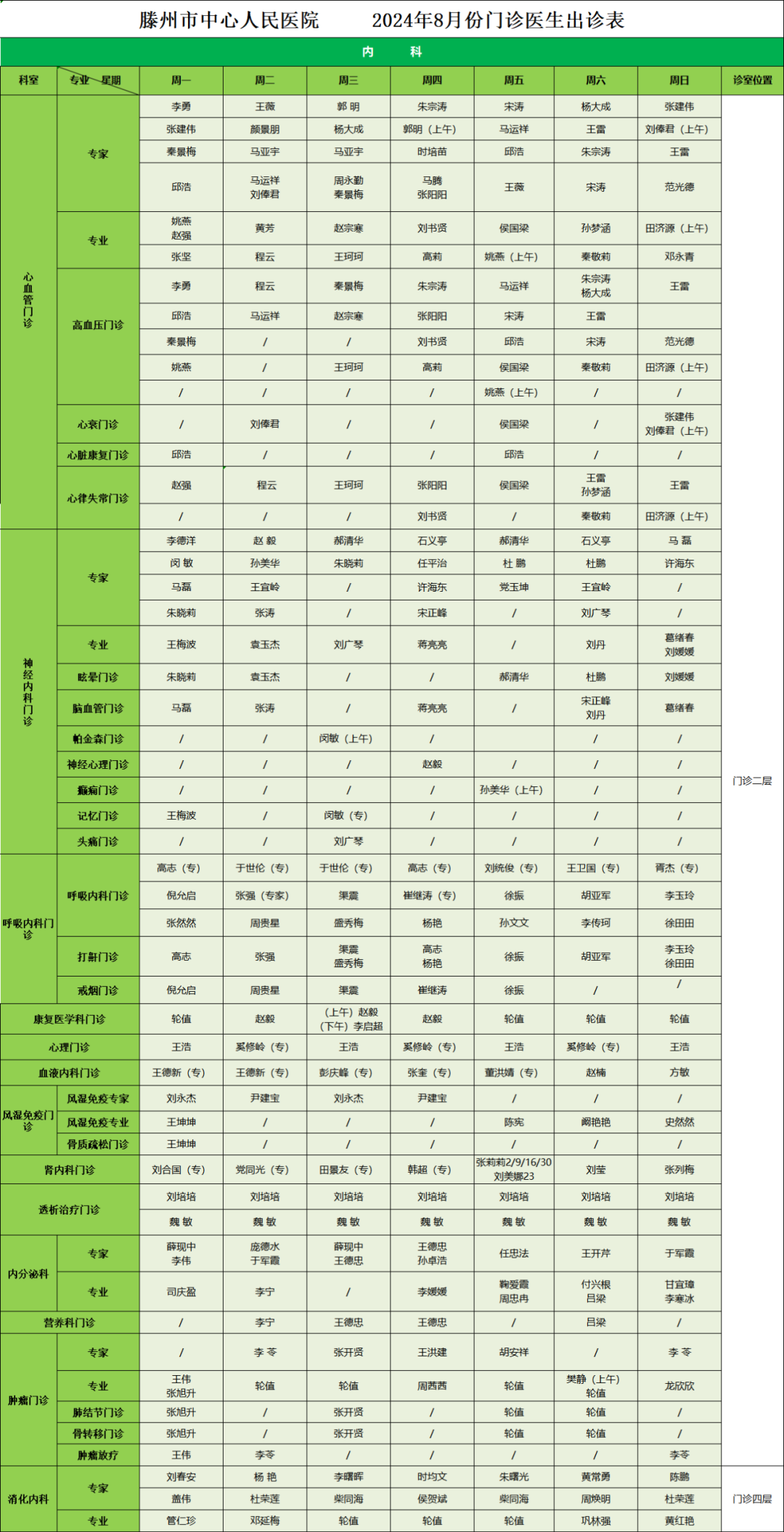 为了提供优质的医疗服务,我们为您发布最新的门诊医生坐诊信息,便于您根据自身情况,选择合适的医生、合适的时间就诊,希望能为您的就诊带来便利。