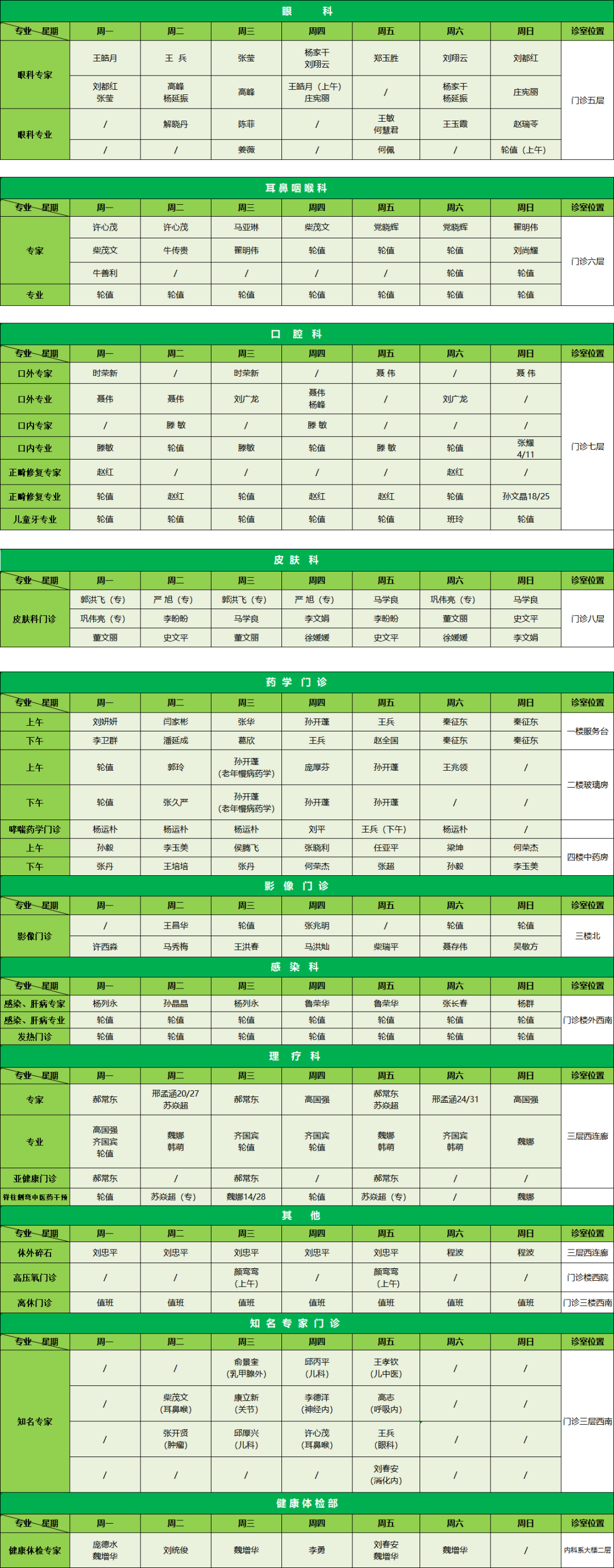 特殊情况医生有停替诊,以当日号表为准,门诊部会及时通知预约病人。