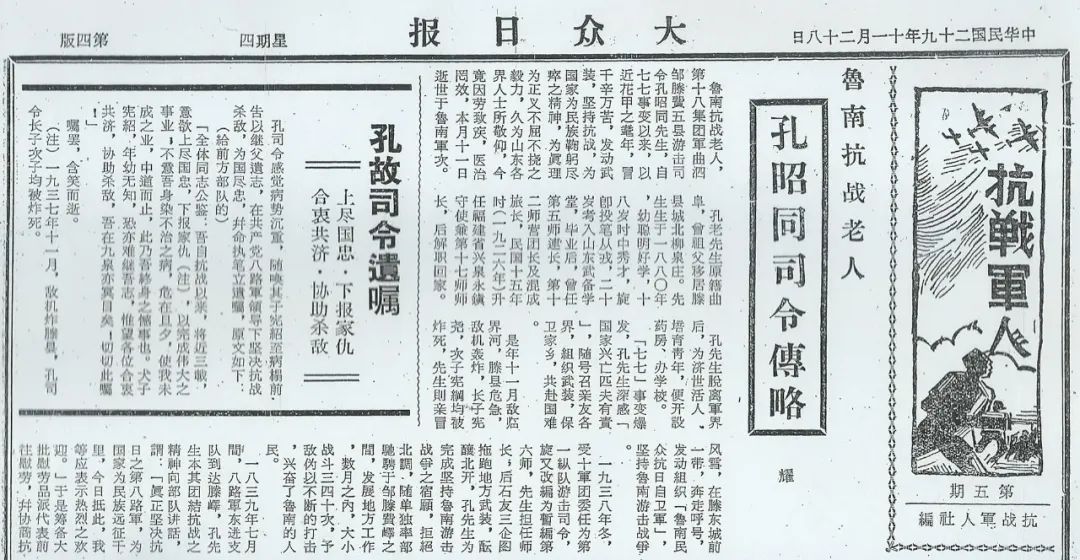 《大众日报》报道孔昭同去世消息