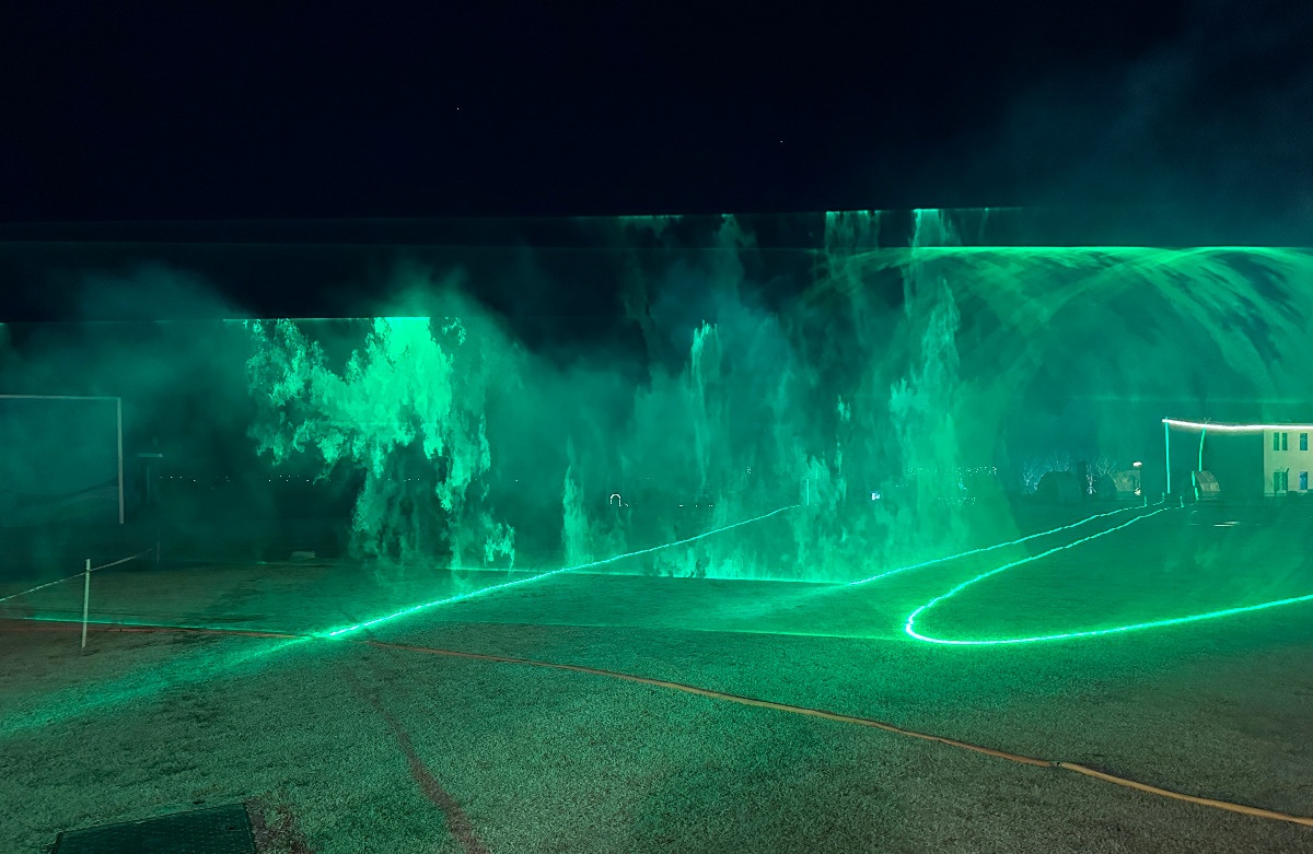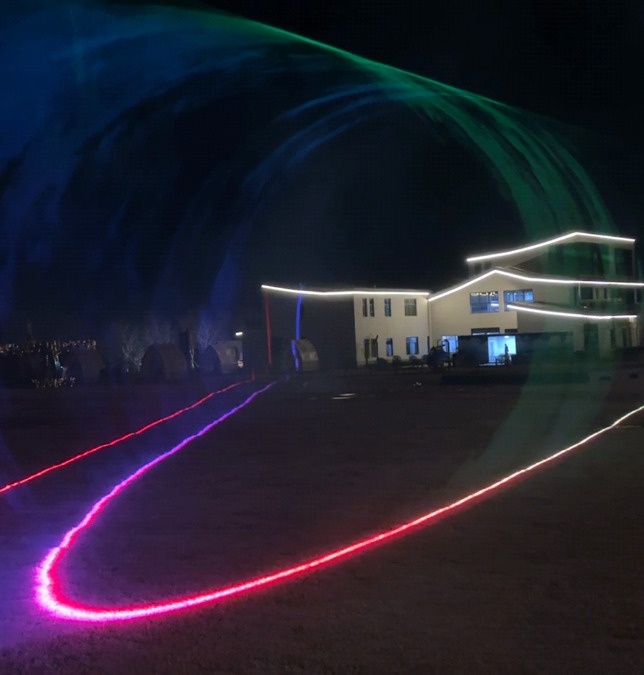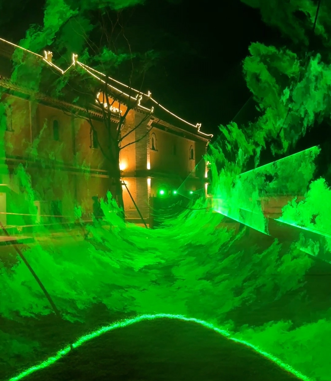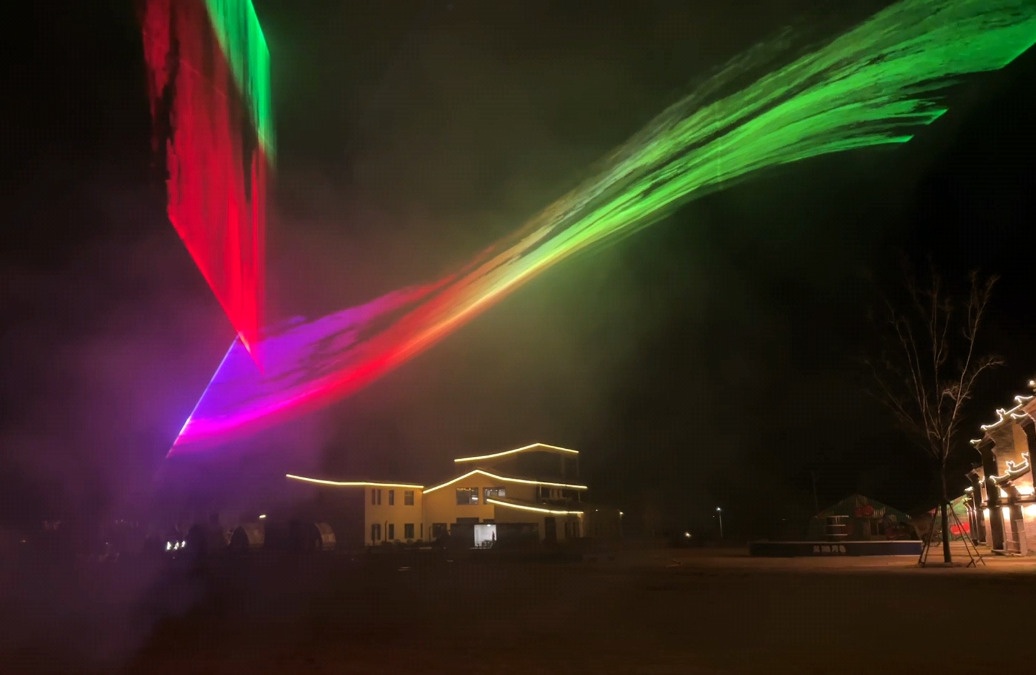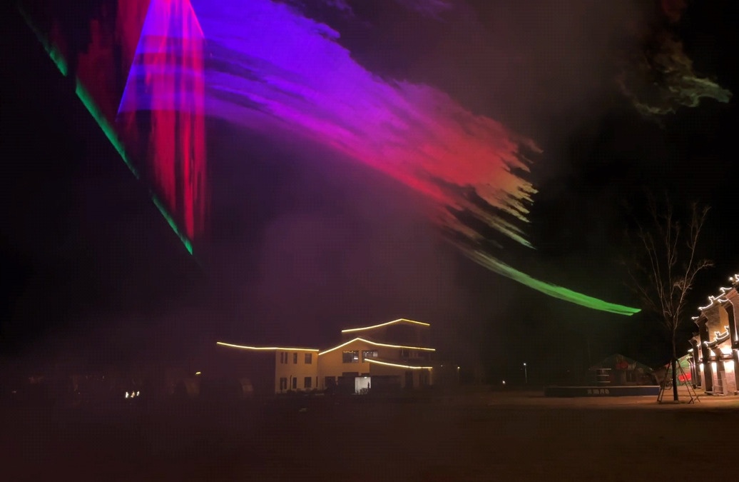 烟雾袅袅升起,温柔笼罩着整片场地,五彩激光穿透薄雾,在夜空下肆意穿梭折射。一条条灵动的光线交织缠绕,竟构筑出一条blingbling的梦幻“时光隧道”,踏入其中的瞬间,仿佛穿越到了童话般的奇幻世界。光影在脚下流淌,在身旁跳跃,抬头是漫天星河般的璀璨,低头是随步变幻的光斑,视觉冲击力直接拉满!