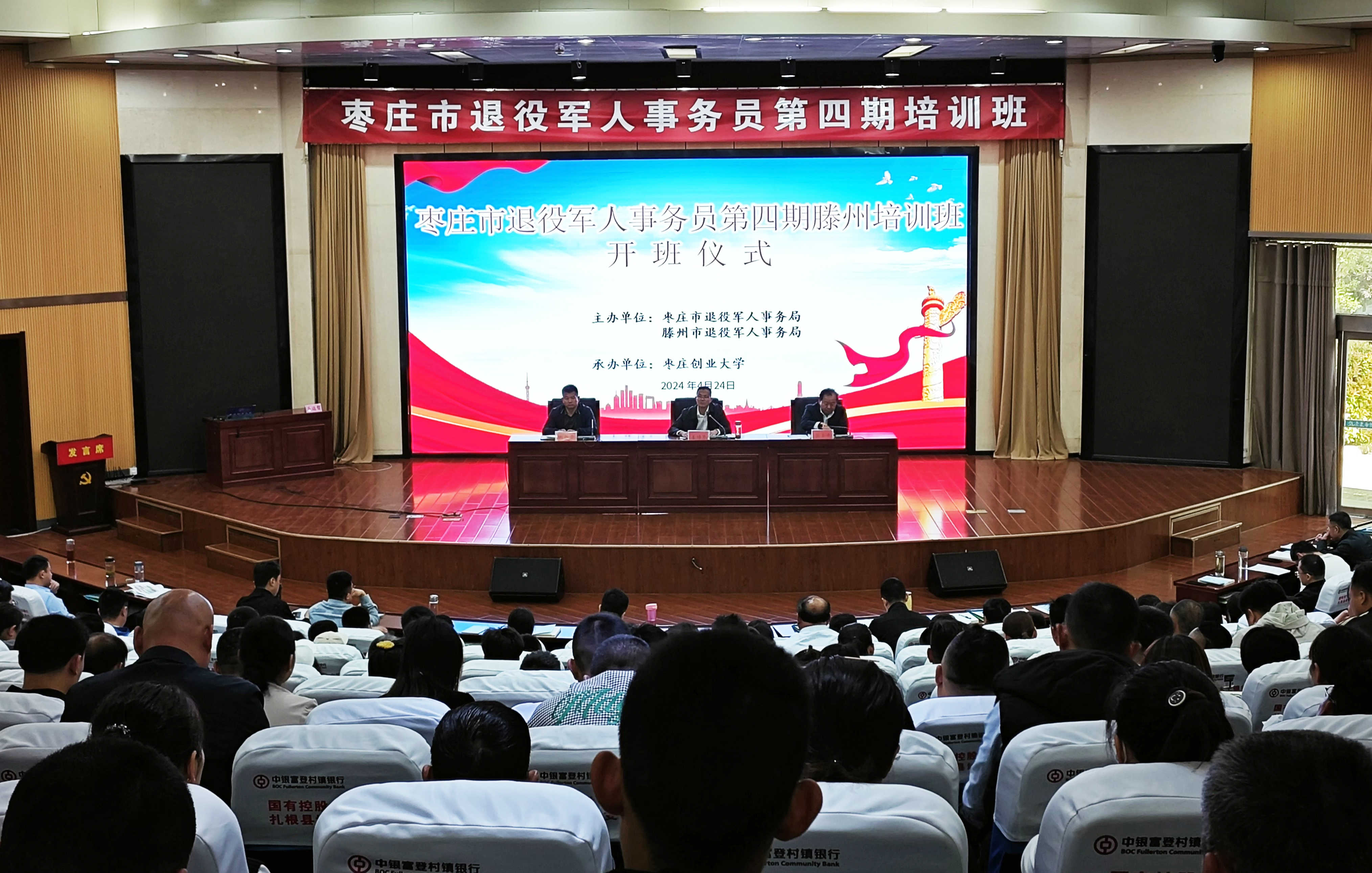 为做好退役军人事务员培训评价试点工作,助力建设高素质专业化退役军人事务工作干部队伍,切实推动退役军人服务保障工作高质量发展,打通退役军人服务工作“最后一公里”,4月24日,枣庄市退役军人事务员第四期滕州培训班在滕州市委党校一楼报告厅正式开班。滕州市退役军人事务局党组成员、副局长姜传东出席开班仪式并作动员讲话。市退役军人事务局党组成员、副局长张立平主持开班仪式。市退役军人服务中心、各镇(街道)、村(居)部分退役军人服务站工作人员共计488人参加培训。