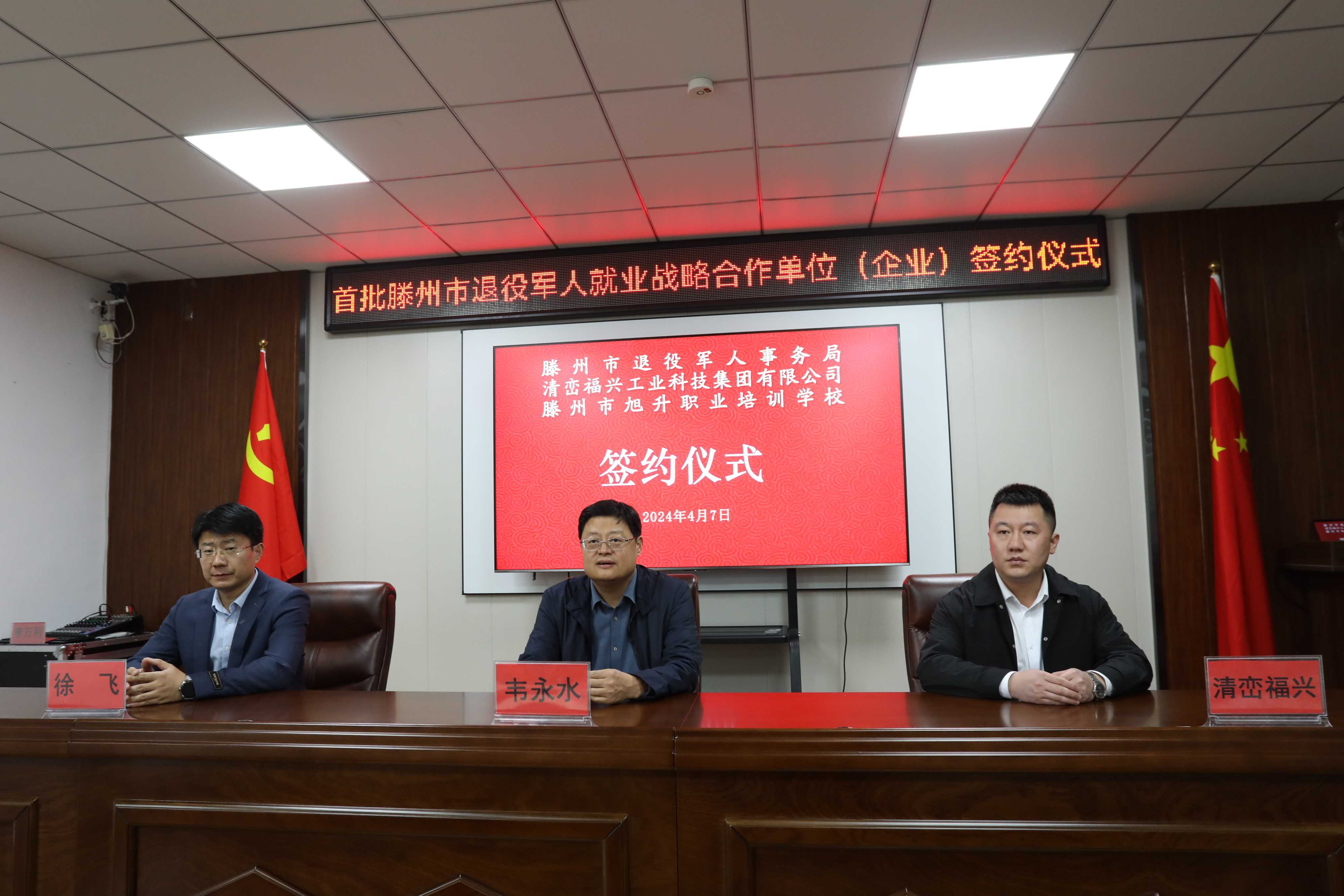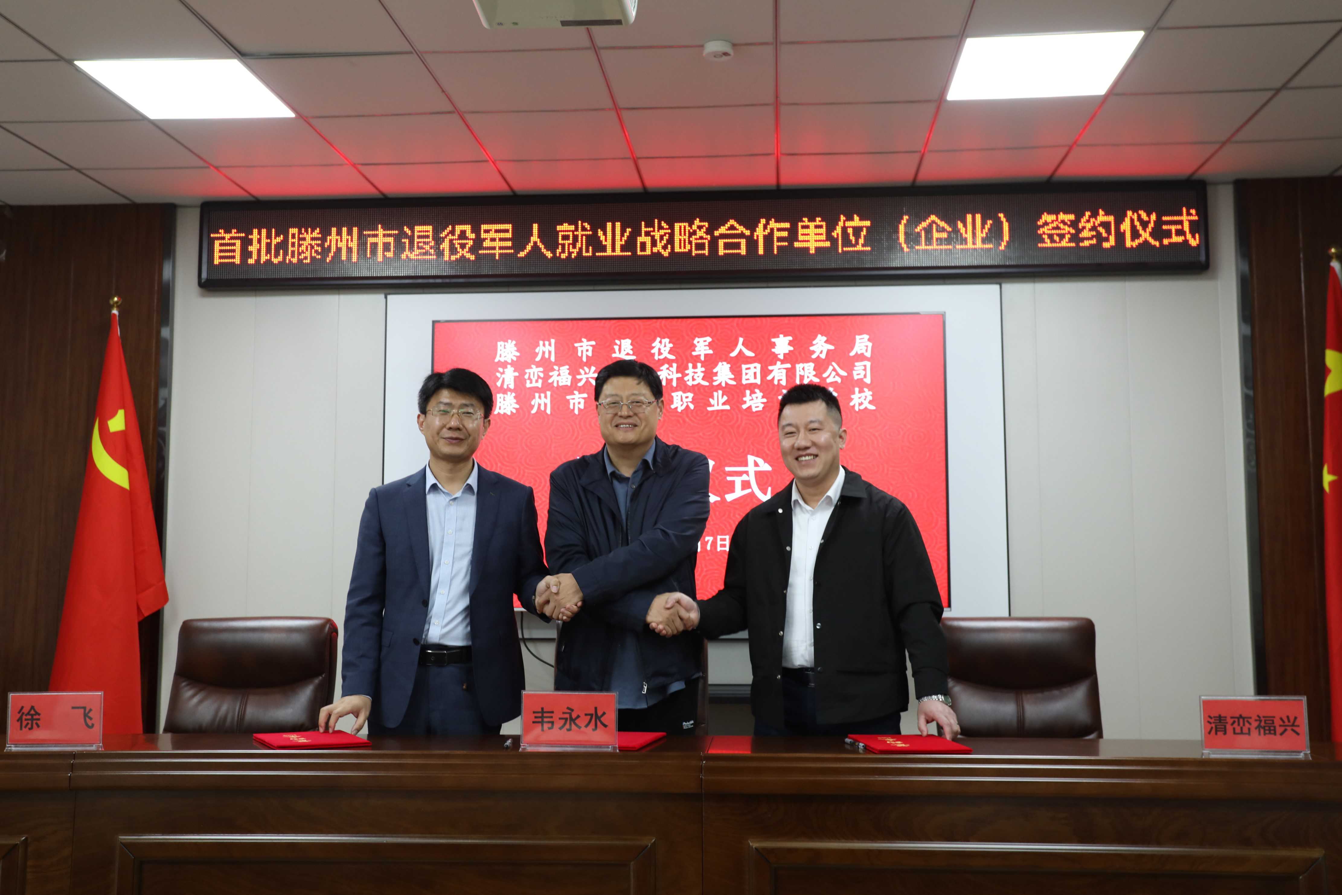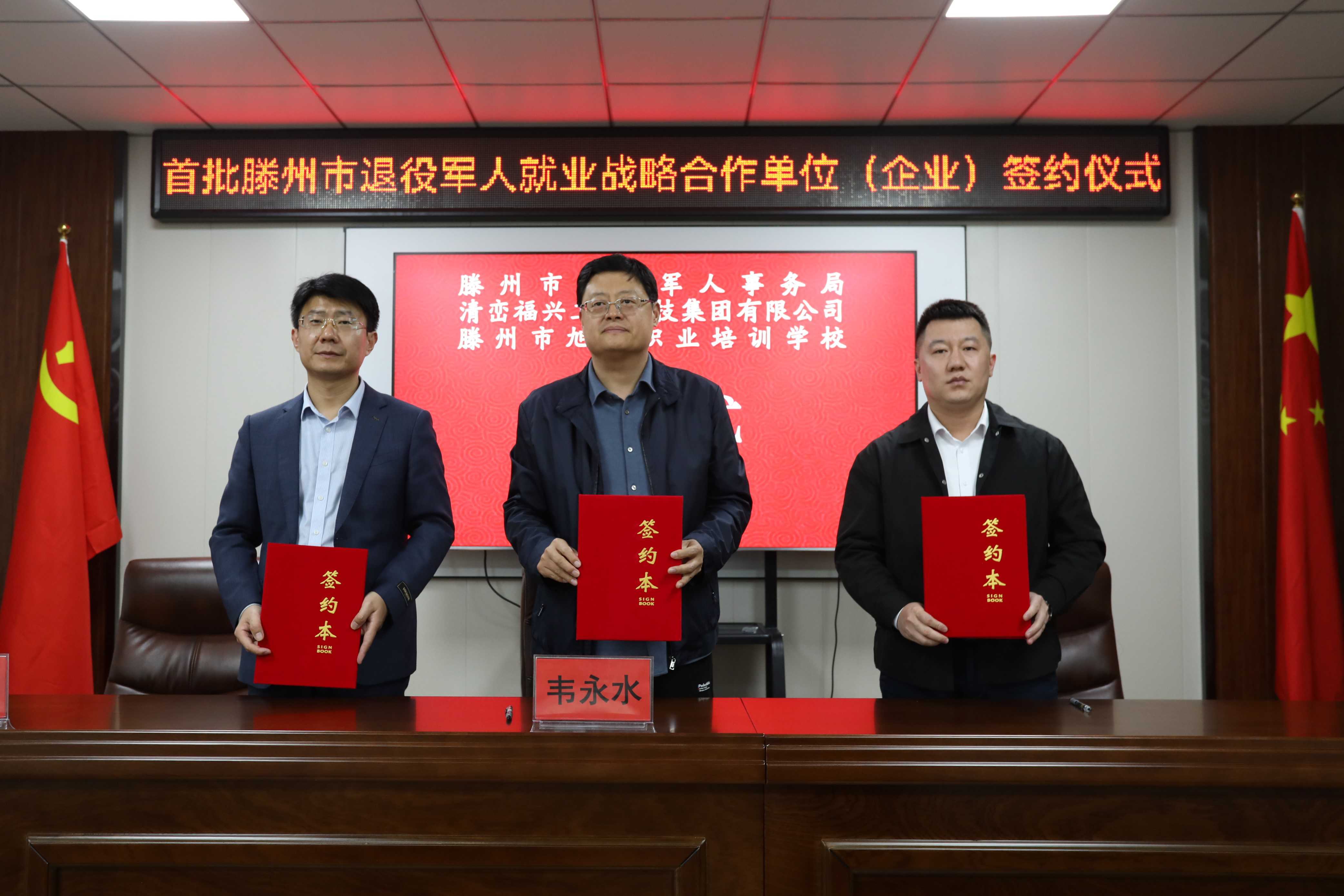 为拓宽自主就业退役军人就业渠道,发挥滕州龙头企业就业吸附优势,落实自主就业退役士兵“订单式、定岗式”职业技能提升培训,真正打造“入学即入职,毕业即上岗”的精准职业技能培训目标,4月7日,滕州市退役军人事务局联合清峦福兴工业科技集团有限公司、滕州市旭升职业培训学校举行退役军人就业战略合作单位签约仪式。