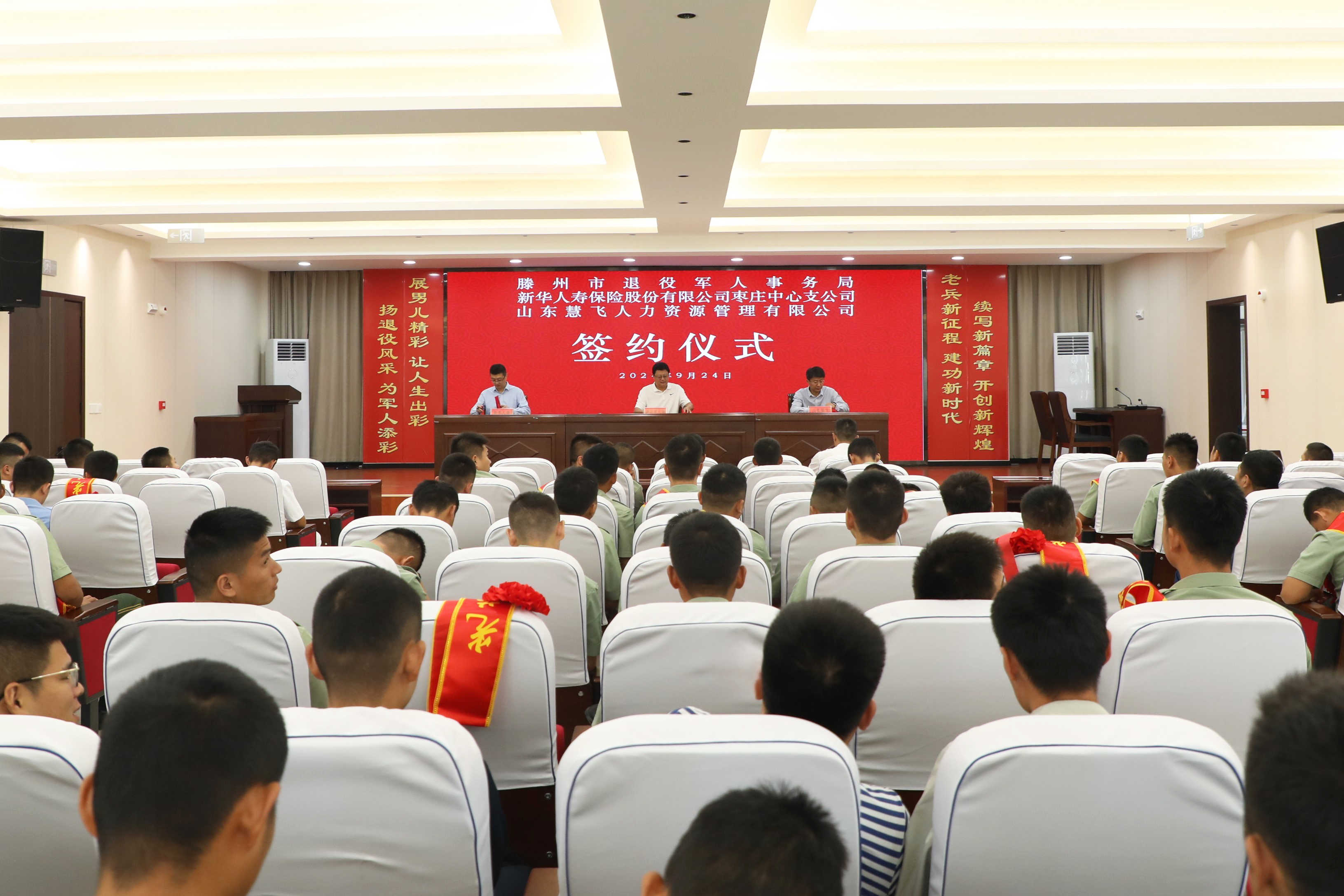 为更好支持退役军人就业创业,9月24日,滕州市退役军人事务局联合新华人寿保险股份有限公司枣庄中心子公司、山东慧飞人力资源管理有限公司在退役军人档案馆二楼会议室举行退役军人就业战略合作单位(企业)签约仪式。滕州市退役军人事务局党组成员、服务中心主任韦永水,新华人寿保险股份有限公司枣庄中心支公司总经理李洪亮、山东慧飞人力资源管理有限公司负责人徐飞等出席仪式。