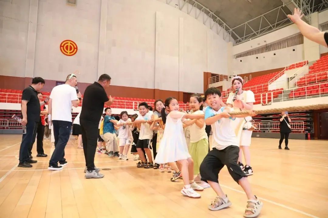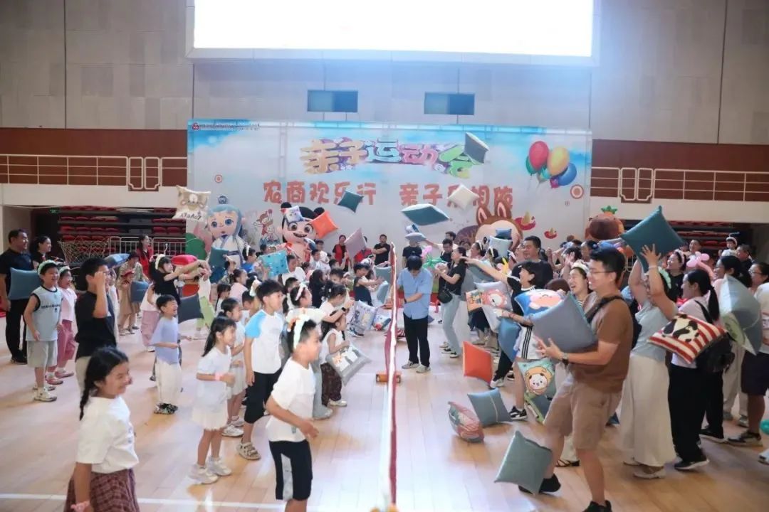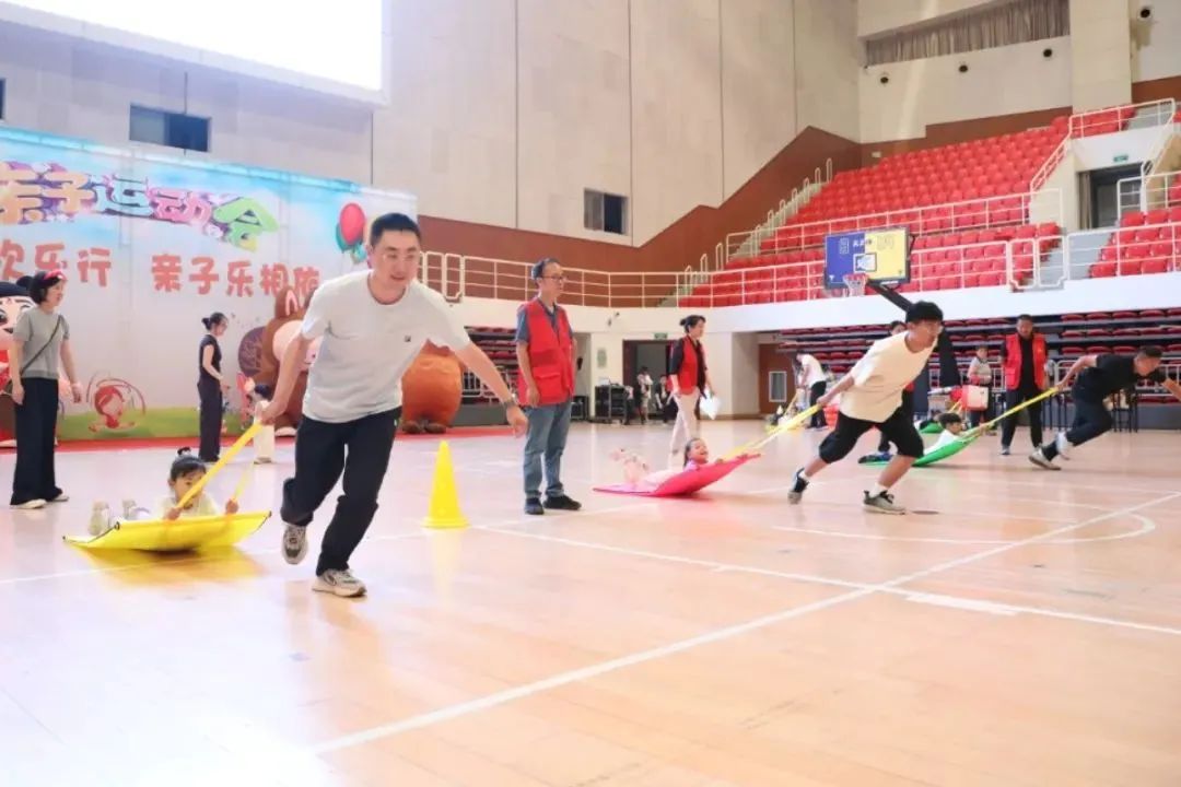 运动会上,各类趣味项目精彩纷呈。在“欢乐套大鹅”中,孩子们化身为小超人,与家长默契配合闯关;“魔法飞毯”项目里,亲子合力保持平衡,现场紧张又有趣;“多向拔河”更是将活动推向高潮,家长奋力向前,孩子们在旁加油助威,欢笑声、加油声不断,现场洋溢着浓浓的亲子情。