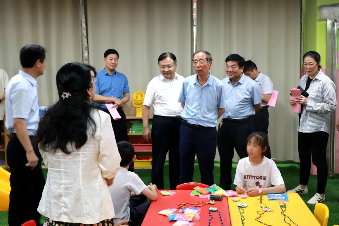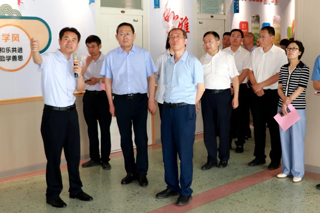 韩金祥一行来到北辛街道通盛路小学,听取了相关工作汇报,实地察看了学校校园环境,参观了艺术长廊、学校图书馆、风铃展厅、管理文化长廊等功能场所,与学校负责同志进行深入交流,详细了解学校办学情况、师资配备、教育管理、课程设置以及特殊需要儿童就近到普通学校接受义务教育等情况,对学校多年来取得的办学成果及教师的辛勤付出给予充分肯定,并就《山东省特殊教育条例(草案)》相关事宜进行讨论交流,要求学校全面贯彻党的教育方针,落实立德树人根本任务,加强特殊教育教师配备和培养,完善教育保障机制,促进教育高质量发展。