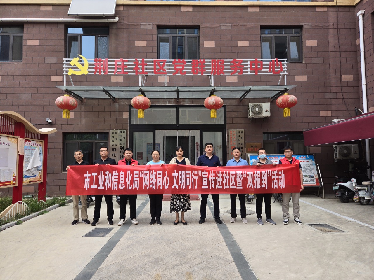 第五届山东网络文明周滕州活动于2025年6月23日至29日举办,为进一步加强网络文明建设,推动网络文明传播,促进社会主义精神文明建设,6月25日下午,市工信局到荆庄社区开展“网络同心 文明同行”宣传进社区暨“双报到”活动。