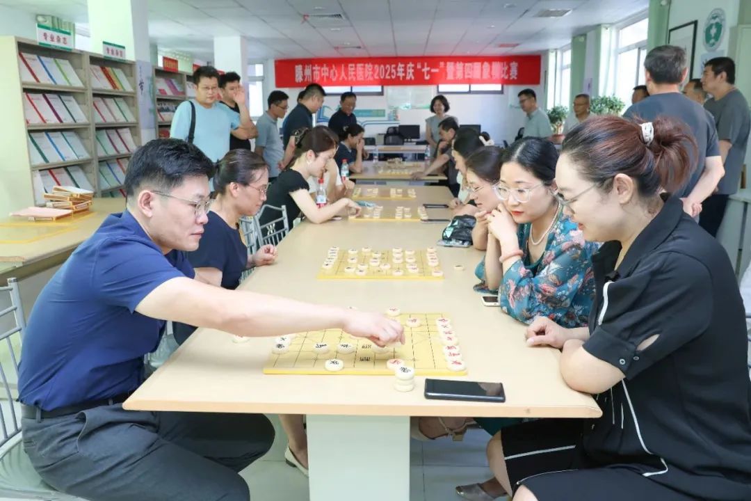7月5日,滕州市中心人民医院开展2025年庆“七一”暨第四届象棋比赛。本次比赛吸引了来自医院各科室的众多象棋爱好者参与,选手们齐聚一堂,以棋会友,共同庆祝建党节。