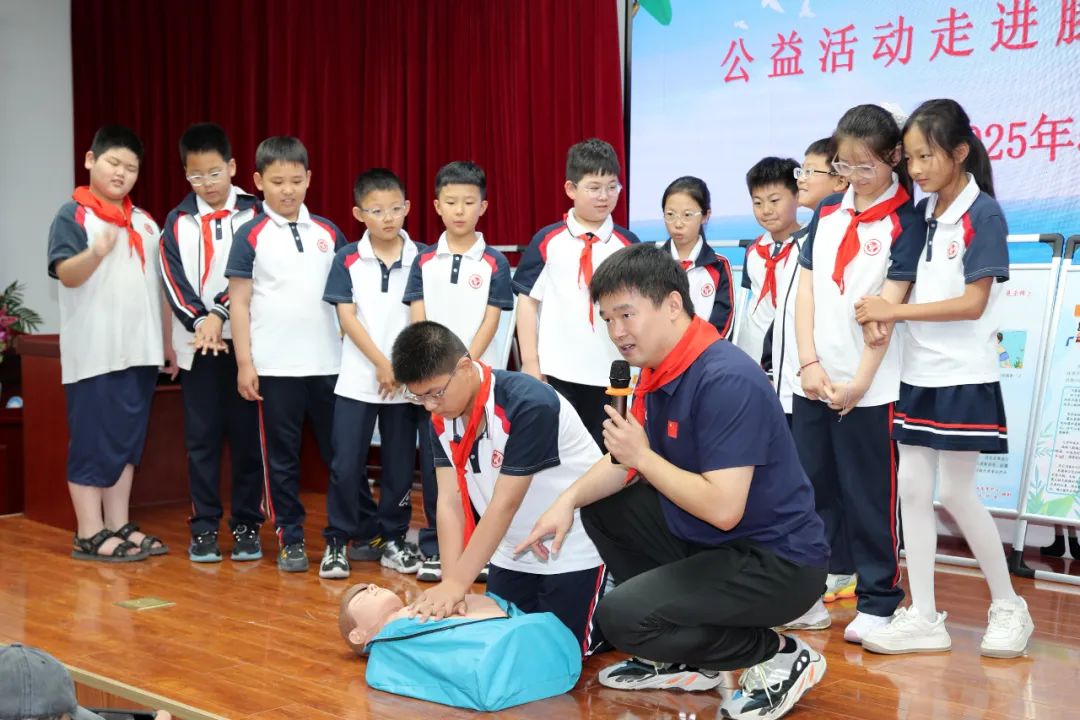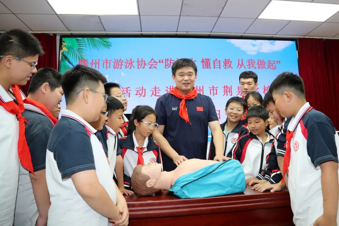 在简洁庄重的捐赠仪式后,被誉为"水上安全卫士"的赵高毅老师登上讲台。作为国家中级游泳教练、二级裁判员及国家级救生员,这位深耕水域安全教育十五年的专家,不仅是滕州电视台防溺水节目主讲人,其原创教学视频更创下超500万次的网络传播纪录。他创新采用"情景预设+角色代入"教学法,将专业救生知识转化为趣味互动:时而抛出"发现溺水者第一反应是什么"引发全场抢答,时而化身"溺水者"考验学生应变能力。