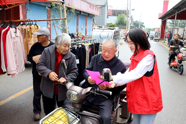 志愿者走上街头,向群众发放《移风易俗倡议书》,内容涵盖简约、平安、文明、温暖过节,面对面向群众讲解勤俭节约、婚事新办、丧事简办、"无事酒"不办,抵制高额彩礼、铺张浪费、"厚葬薄养"等陈规陋习,重点针对双节期间可能出现的婚庆攀比、铺张浪费、高价彩礼乃至恶俗婚闹等问题进行重点引导,倡议大家要抵制恶俗婚闹,倡导文明婚嫁,摒弃陈规陋习,讲文明树新风,绿色朴素过佳节。