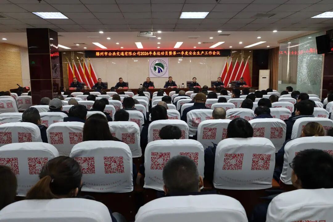 会议宣读了公司《2026年春运安全生产和服务保障实施方案》。随后,分公司负责人、驾驶员代表作了表态发言。公司党委书记、董事长苏学东与安全总监、安全总监与各分公司负责人逐级签订《2026年春运安全生产责任书》。
