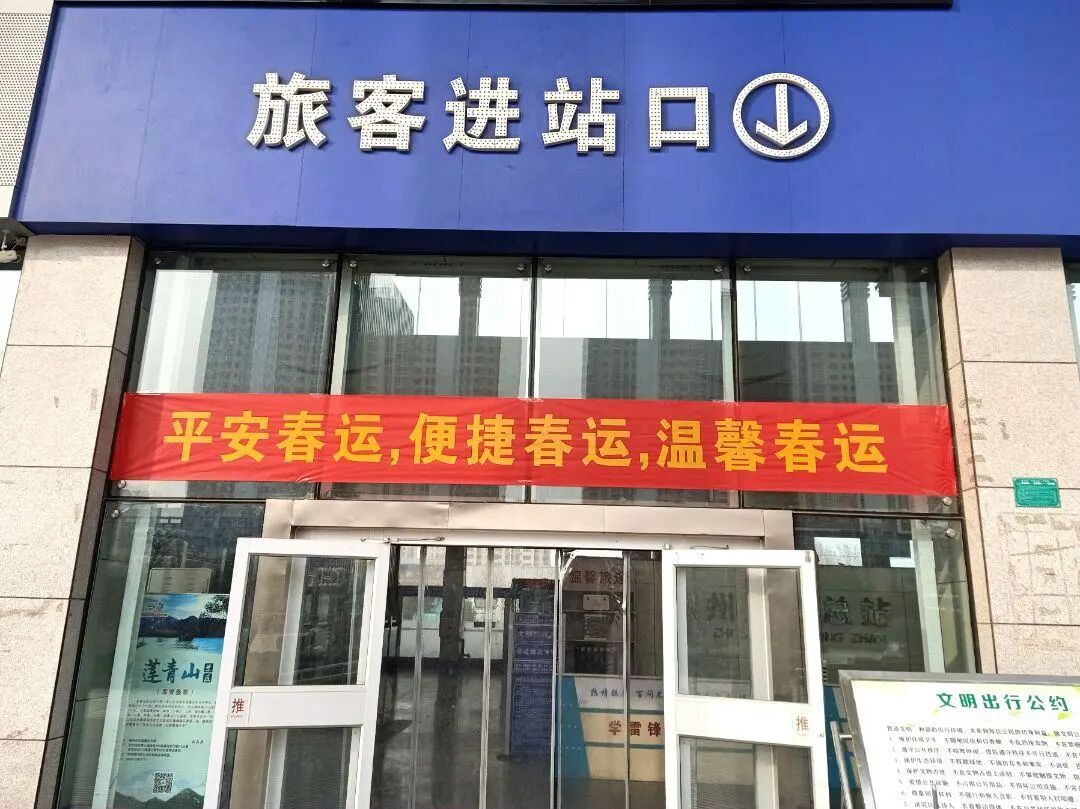 在车站进站口等显著位置悬挂春运主题横幅,利用电子屏、宣传展板等载体发布服务指南、安全提示等信息,积极营造温馨和谐、安全有序的春运出行氛围。