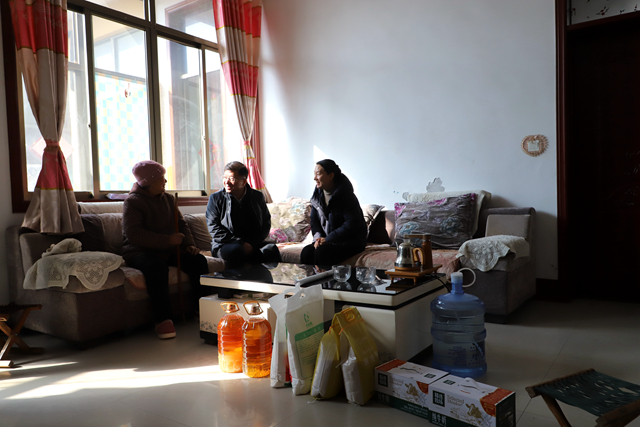 赵炜、单金凤一行来到烈士遗属家中,细致了解他们的身体状况、生活起居,送上米、面、油等慰问品,并与他们亲切交谈,鼓励他们要以积极乐观的态度面对生活,向他们致以诚挚的节日问候与祝福。