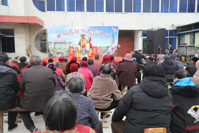 演出尚未开场,村里的老年戏迷们便自发带着马扎、板凳,早早来到村委会有序落座,翘首以盼好戏登场。不大的场地内座无虚席,处处洋溢着欢乐祥和的节日气息。