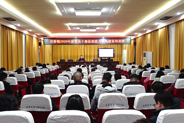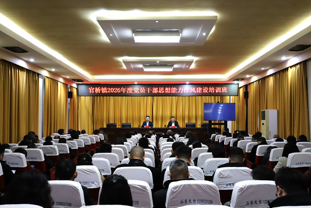 2月24日,官桥镇在镇三楼会议室召开2026年度党员干部思想能力作风建设培训班。党委书记刘涛作讲话,党委副书记、镇长杨磊主持会议。全体领导干部、机关干部,各党总支全体等同志参加会议。