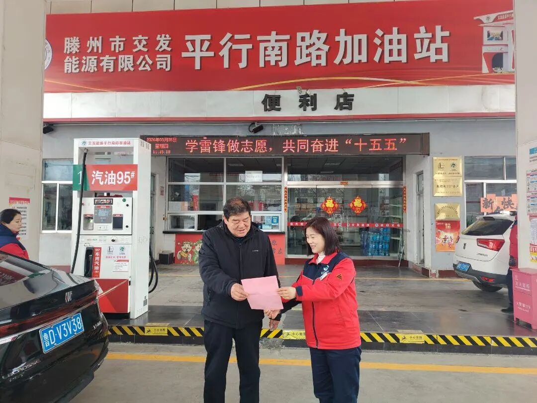 活动围绕“学雷锋、传文明、践初心”,贴近民生需求,开展了多项志愿服务。在公司南北两站服务点,志愿者向过往顾客和司乘人员发放了“学雷锋 文明出行”倡议书,普及文明行车、安全驾驶、绿色出行知识,引导公众自觉遵守交通规则,共同营造安全有序的出行环境。同时,在服务台设置便民饮水点,为往来顾客、环卫工人、快递小哥等免费提供开水,并深入加油站周边路段和社区开展环境整治,清理路面垃圾、绿化带杂物及卫生死角。