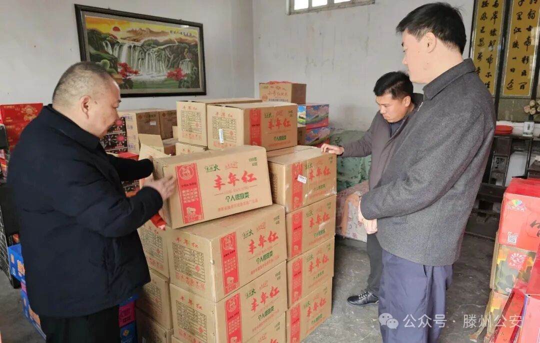 2025年12月29日,荆西派出所在侦办一起案件时,精准锁定关键线索,随即联合治安大队开展查处行动。行动中,民警先后在姜屯镇某村查获各类烟花爆竹80余箱,在鲍沟镇某村查获各类烟花爆竹300余箱。目前,违法行为人朱某某已被依法行政拘留,犯罪嫌疑人张某已被采取刑事强制措施。