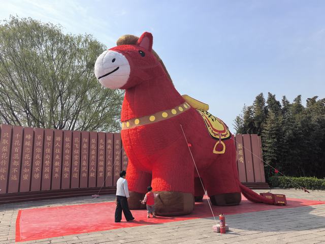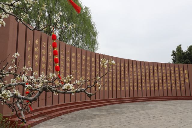 2026丙午马年,景区大门广场设可爱卡通马形象,寓意一马当先、马到成功,游客可合影沾福。旁边竹笺影墙镌刻《梨园颂》,赏梨读诗拍美照,氛围感拉满。