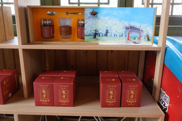 枣庄优品馆内,刘村贡梨打造的梨膏、梨汁等产品,古法结合现代工艺,无添加更健康;本土文创产品兼具实用性与纪念意义,可将梨乡美景与文化带回家。