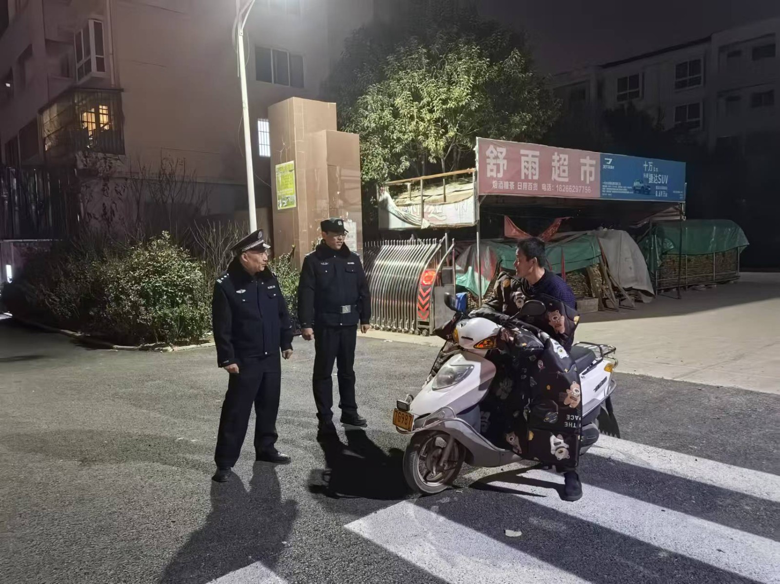 科技赋能织密防控网,街面巡防筑牢安全线。扎实开展社会面巡逻防控工作,推进科技防控智能化升级,新增8个高清监控摄像头,实现重点背街小巷、人员密集场所全覆盖,与“雪亮工程”形成联动。为提升街面见警率与震慑力,统筹派出所力量开展常态化夜间巡逻,民辅警结合辖区夜间活跃度特点,对营业场所、重要路段等重点区域强化防控,同步倾听群众诉求、排查化解纠纷、普及安全知识,构建起“面上防、线上巡、网上宣”的立体防护格局。