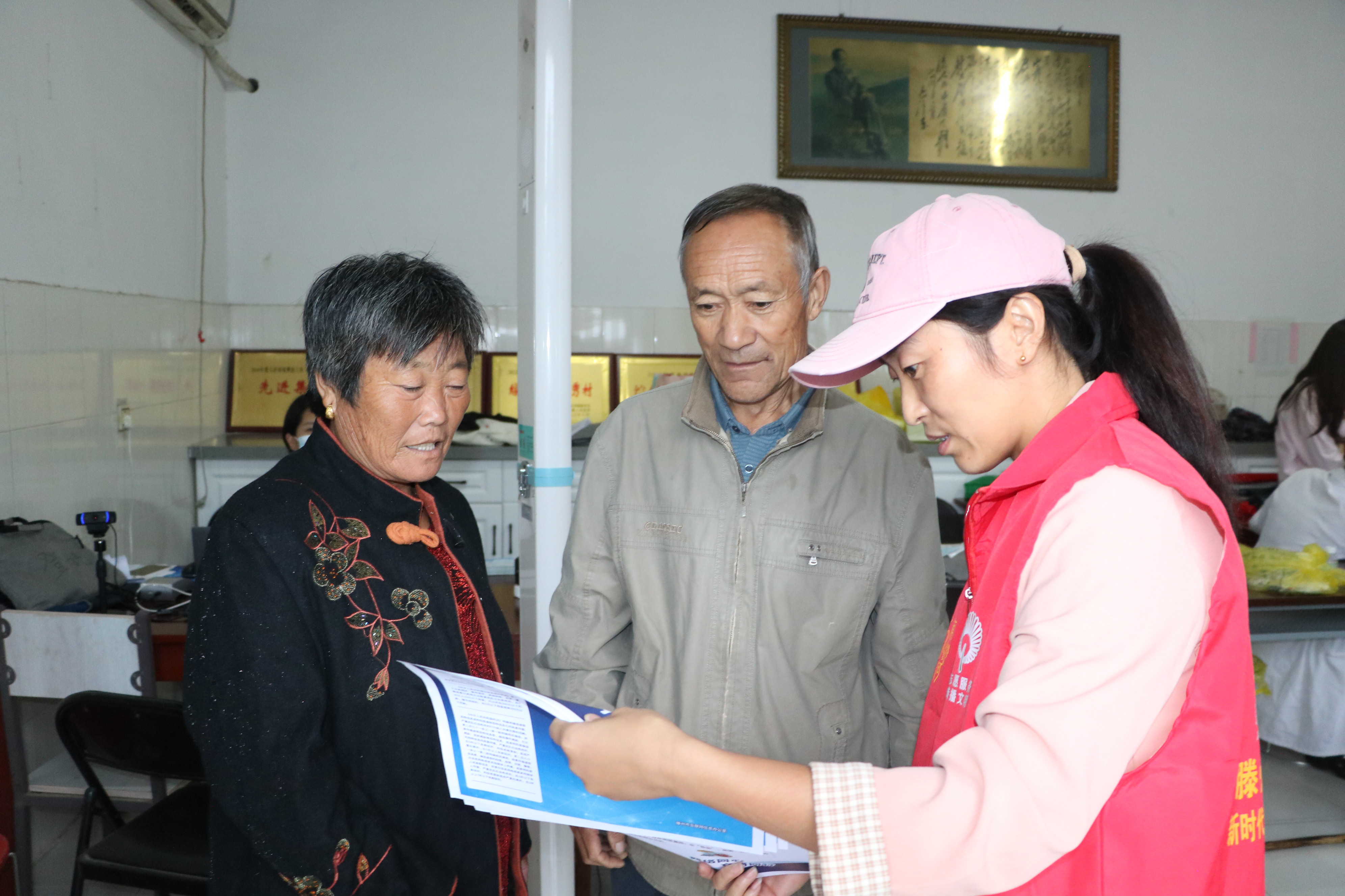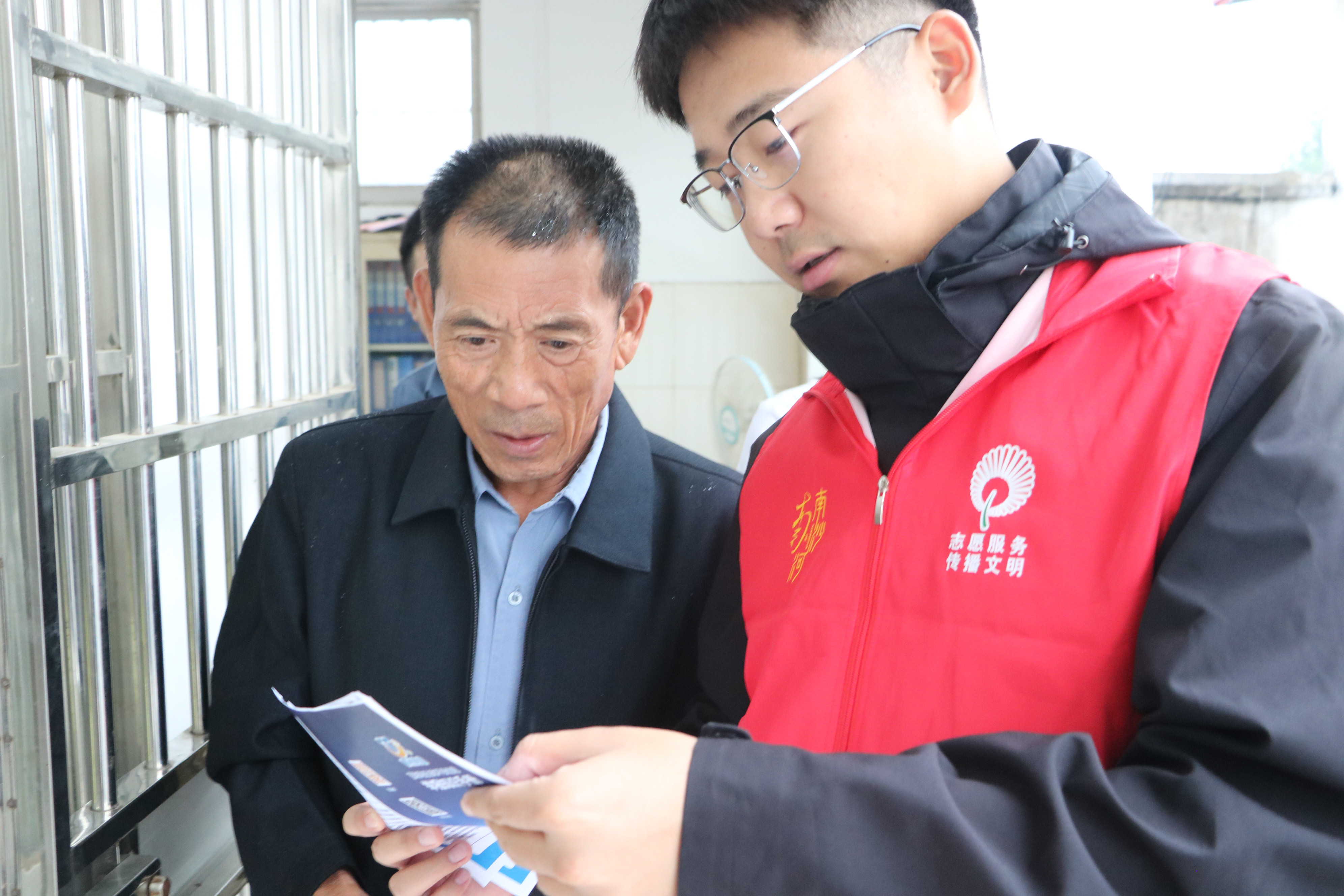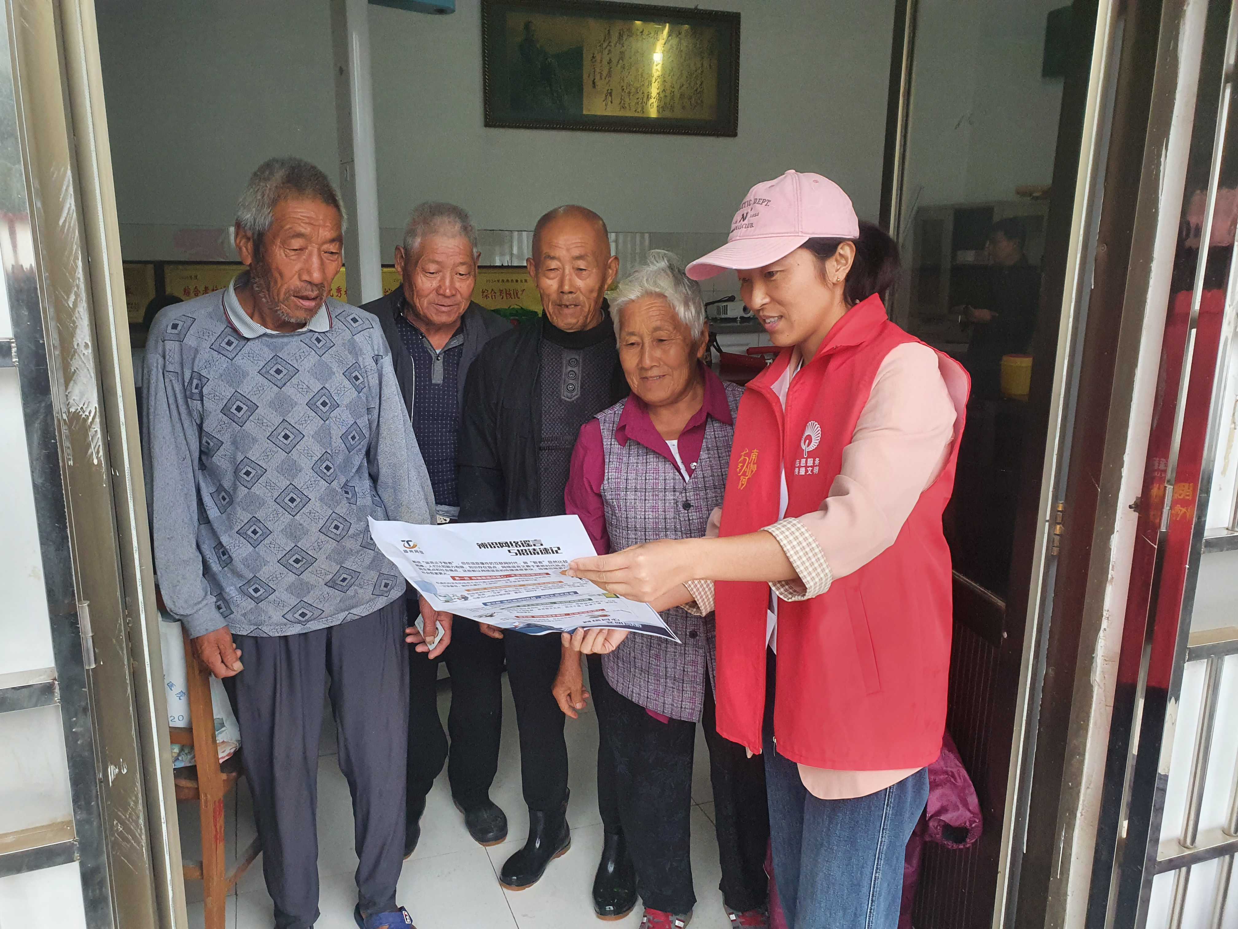 活动现场为扩大宣传覆盖面,志愿者向过往村民发放宣传手册,认准三类高发骗局,免费好事别轻信、熟人借钱多核、实养老投资要当心,记住三个不原则,不盲目转钱财、不轻易点链接、不随便透信息。并耐心解答村民在网络使用中遇到的问题。